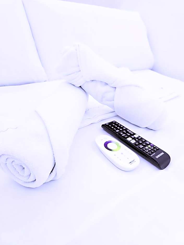 Inside, amenities are wired for comfort and convenience: free Wifi, a streaming service (like Netflix), air conditioning, a private entrance, soundproof rooms, a 24-hour front desk, non-smoking rooms, and well-equipped kitchens with kitchenware and a kitchenette. Comfort continues with a bathtub, extra-long beds (> 6.5 ft), and a bidet, all wrapped in thoughtful soundproofing. For travelers who need a ride, shuttle service is available for an extra charge.